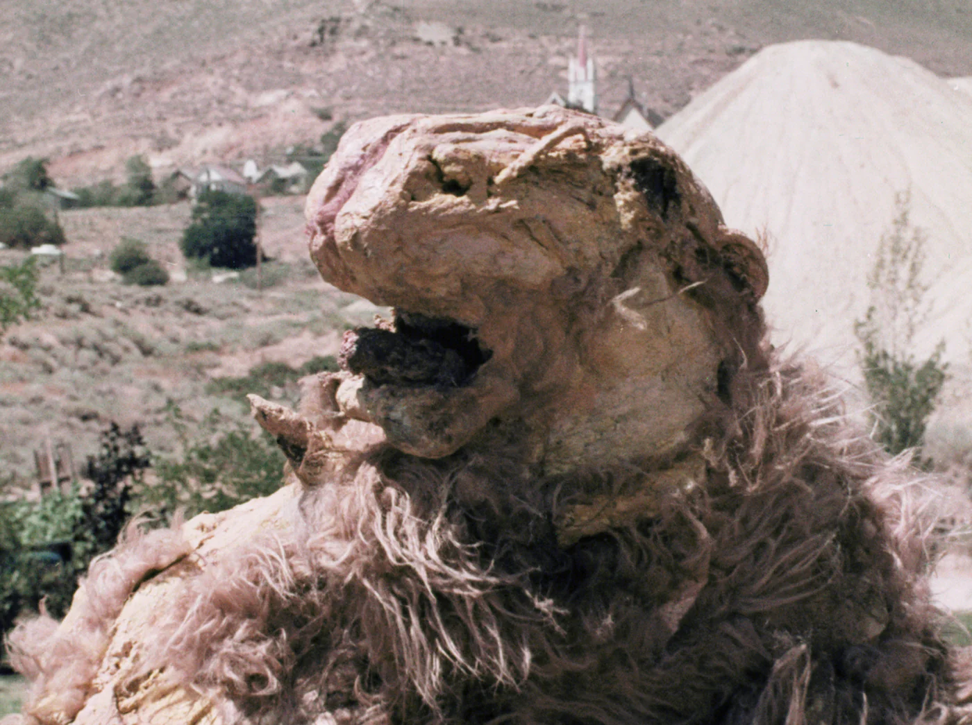 Just when you thought it was safe to go back to the petting zoo, you meet . . . GODMONSTER OF INDIAN FLATS! Written and directed by infamous outsider artist Fredric C. Hobbs (ALABAMA’S GHOST), this is the story of an eight-foot-tall toxic sheep monster that blows up gas stations, smashes crooked politicians, and terrorizes stoners. From the surreal “wild west” locations to the outrageous monster effects, GODMONSTER OF INDIAN FLATS is one of the most berserk and inexplicably deranged creature features in motion picture history. This includes the scene where the Godmonster crashes a children’s picnic. In the wise words of legendary filmmaker Frank Henenlotter (FRANKENHOOKER), “Get the straight jackets ready!”